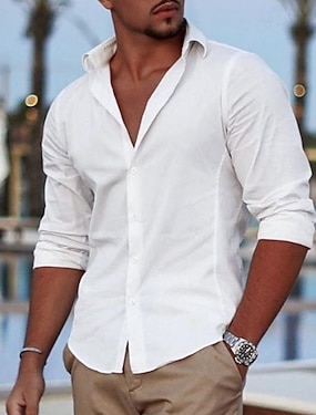 Miesten Paita pellava paita Kesä paita Ranta-asut Button Up paita Tavallinen Loma Curise Valkoinen Pitkähihainen Kauluskäänne 봄 & Syksy Vaatetus