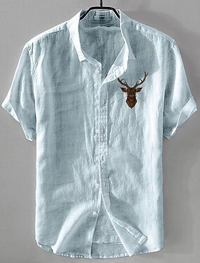 Miesten Pellava paita Rento paita Puuvillainen pellava paita Button Up paita Eläinkuvioinen Loma Arki-asut Valkoinen Tumma laivastonsininen Taivaan sininen Khaki Lyhythihainen Kauluskäänne Kaikki