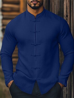 Miesten Paita pellava paita Guayabera paita Band kauluspaita Kesä paita Ranta-asut Loma Curise Musta Valkoinen Punastuvan vaaleanpunainen Sininen Pitkähihainen Pystykaulus Kevät kesä Vaatetus