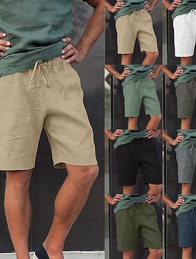 Miesten Shortsit Puuvillaiset pellavashortsit Kesähousut Rantahousut Tasku Kurenauha Joustava vyötärö Tavallinen Mukavuus Hengittävä Polven pituus Loma Pyhäpäivä Hiekkaranta Havaijilainen Boheemi