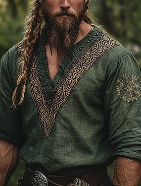 Miesten Paita Pellava paita Viikinki tyyli Popover paita Kesä paita Ranta-asut Geometrinen Loma Katu Sininen Apila Khaki Pitkähihainen V kaula-aukko Kesä Kevät Vaatetus