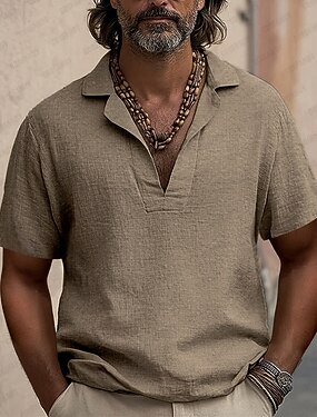 Miesten Paita Pellava paita Rento paita Puuvillainen paita Tavallinen Loma Katu Sininen Kahvi Lyhythihainen Sänkyjen avaus Kesä Vaatetus