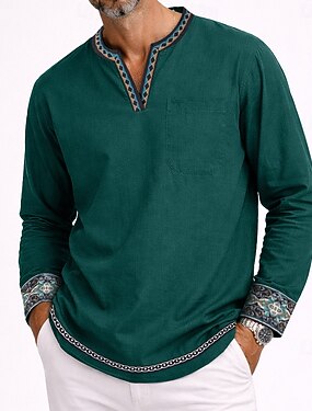 Miesten Paita Pellava paita Popover paita Kesä paita Rantapaita Yhtenäinen väri Kausaliteetti Loma Apila Pitkähihainen V kaula-aukko Kevät Vaatetus