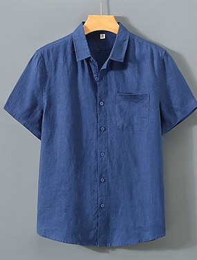 Miesten pellava paita Rantapaita Button Up paita Lyhythihainen Rantatyyliä Loma Pyhäpäivä Ranta-asut Kesä Kevät kauluspaidat Punastuvan vaaleanpunainen Sininen Apila Harmaa