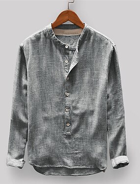 Miesten Paita Puuvillainen pellava paita Kiinalainen kauluspaita Mandarin kauluspaita Popover paita Kesä paita Tavallinen Loma Kausaliteetti Musta Valkoinen Sininen Ruskea Pitkähihainen Henley Kevät
