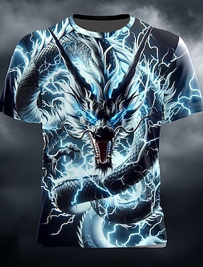 Miesten Lohikäärme 3D T-paita Lyhythihainen T-paita 3D-tulostus Tiukka pyöreä kaula-aukko Paita Suunnittelija Fantasia Juhla Pyhäpäivä Sininen Rubiini Apila Kesä Kevät Vaatetus S M L XL XXL XXXL
