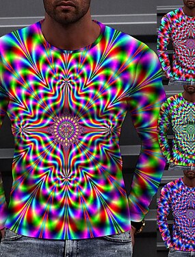 Miesten 3D Print T-paita Pitkähihainen T-paita 3D-tulostus Tiukka pyöreä kaula-aukko Paita Urheilu Muoti Urheiluasut ulko- Loma Katu Rubiini Sininen Apila Syksy Vaatetus S M L XL XXL XXXL 4XL