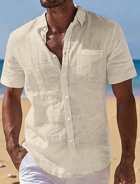 Miesten Pellava paita Minimalistinen Aloha-paita Rento paita Puuvillainen pellava paita Button Up paita Kookospuu Loma Katu Musta Valkoinen Vaaleanpunainen Tumma laivastonsininen Lyhythihainen