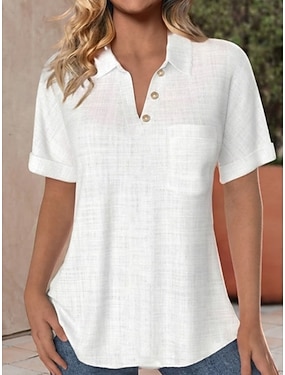 Naisten Pusero Keinopellavapaita Napit Yhtenäinen väri Vintage Tyylikäs Vapaa-aika Puolihiha Paitapuserokaula-aukko Tavalliset topit Päivittäin Sininen Musta Valkoinen Punastuvan vaaleanpunainen Apila