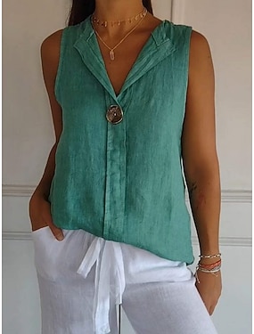 Naisten Paita Pusero Keinopuuvillainen pellava Napit Tavallinen Tyylikäs Vapaa-aika Hihaton V kaula-aukko Tavalliset topit Päivittäin Valkoinen Laivaston sininen Apila Khaki Kesä