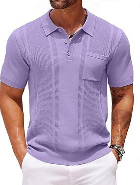 Miesten Poolopaidat Textured Kausaliteetti Työ Kauluskäänne Lyhythihainen Perus Moderni Tavallinen Kevyt Napit Kevät kesä Rubiini Laivaston sininen Purppura Ruskea Aprikoosi Poolopaidat