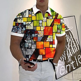 Miesten Raidoitettu Vetoketjulliset poolopaidat Golfpaita Lyhythihainen Poolopaidat Kauluspaidat Business Casual Työasut Muodolliset vaatteet Festivaalivaatteet 3D-tulostus Quarter Zip Polo Kesä Kevät