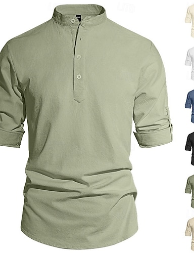 Miesten Paita Pellava paita Kesä paita Ranta-asut Band kauluspaita Vaarin kauluspaita Tavallinen Kausaliteetti Loma Sininen Musta Valkoinen Khaki Pitkähihainen Pystykaulus Kesä Kevät Vaatetus Tasku