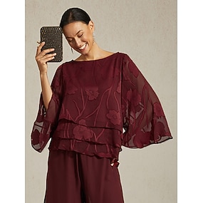 Naisten Pitsipaita Pusero Mekkoiset topit Sifonki Topit Epäsymmetrinen helma Yhtenäinen väri Kukka Tyylikäs Vapaa-aika Puolihiha Leveät hihat Venekaula-aukko Tavalliset topit Päivittäin Työ Häävieras