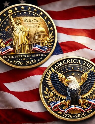 Yhdysvaltain 250-vuotisjuhlaraha 1776-2026, kaljupääkotkan isänmaallinen mitali, e pluribus unum, 250 vuotta vapautta, Amerikan historian keräilylahja
