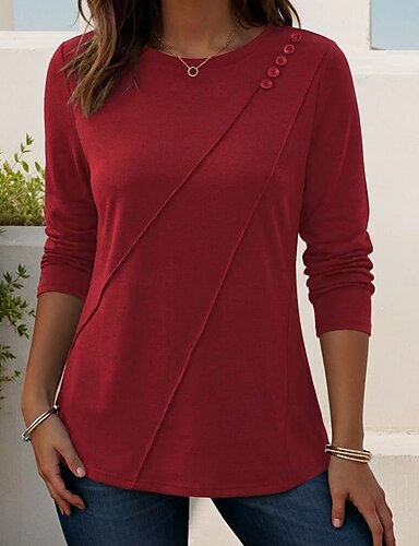 Naisten T-paita Napit Tavallinen Muoti Tyylikäs Klassinen Lyhythihainen Tiukka pyöreä kaula-aukko Tavalliset topit Päivittäin Bile Viikonloppu Sininen Musta Valkoinen Rubiini Apila Kesä Kevät Syksy