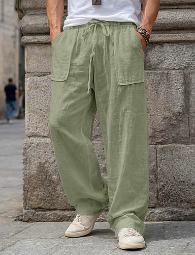 Miesten Pellavahousut Housut Kesähousut Roikkuvat housut Kurenauha Tasku Joustava vyötärö Tavallinen Mukavuus Hengittävä Täyspitkä Kausaliteetti Päivittäin Pyhäpäivä Loma Muoti Sininen Musta