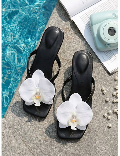 naisten romanttiset valkoiset 3D-kukkakuvioiset stringit - mukavat pehmustetut varvassandaalit, joissa on suuri kukka-aplikaatio luksushotellien uima-altaalle ja rantakohteisiin &häämatka