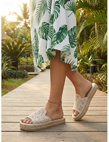 naisten boheemit beigenväriset virkatut korokesandaalit - mukavat kudotut espadrille-sandaalit, joissa on onttoa kirjontaa ulkoiluun, trooppisiin puutarhoihin &kesälomat