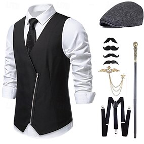 Vintage 1920-luku Asut Juhla-asu Suuri Gatsby Naamiaispuku Miesten Juhla Muodollinen iltajuhla Juhlat Aikuisten Solmio Liivi Hattu Kaikki vuodenajat