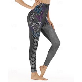 Naisten Housut Leggingsit Mukavat leggingsit Katutyyli Vapaa-aika Täyspitkä Korka vyötärö Perhonen Joustava vyötärö Painettu Hengitettävyys Mukava Elastinen Loma Katu Arki-asut Musta Sininen Purppura