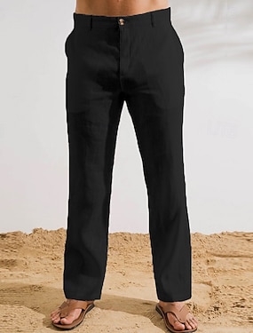Miesten Pellavahousut Housut Kesähousut Rantahousut Edessä tasku Suora jalka Tavallinen Mukavuus Hengittävä Kausaliteetti Päivittäin Pyhäpäivä Muoti Perus Musta Valkoinen