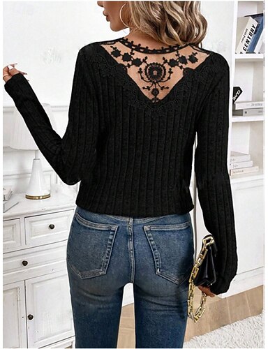 Naisten elegantti pitsitoppi silkkipitsiblusso muoti moderni rento tavallinen säännöllinen toppi pitkät hihat V-kaula-aukko säännöllinen istuvuus päivittäinen viikonloppu romanttinen petite toppi