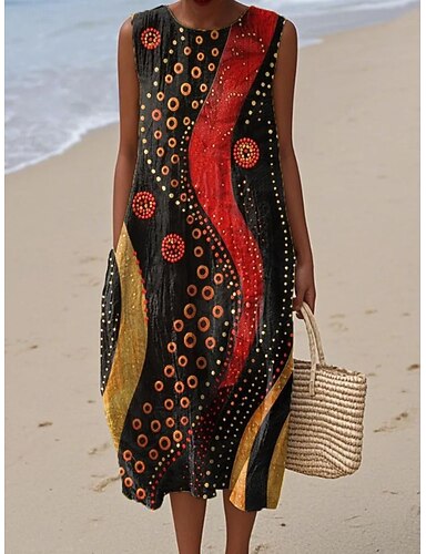 Naisten Midimekko Kesämekko Väljä mekko A linjainen mekko Loma Vapaa-aika Boheemi Hiekkaranta Bile Loose Fit Kuvitettu Geometrinen Abstrakti Hihaton Pyöreäkauluksinen Sininen Musta Vaalea purppura