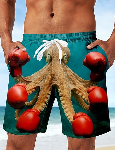 Miesten Mustekala Nyrkkeilyhanska sarjakuva eläimiä Uimahousut Uimapuvut Uimahousut Surffishortsit Keskivyötärö Hauska Rantaloma Sivutaskut Verkkovuori Joustava kiristysnyöri vyötäröllä Suunnittelija