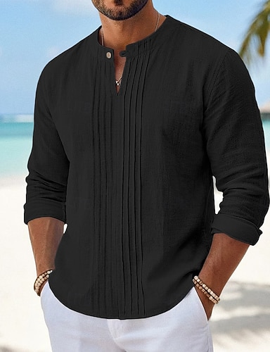 Miesten Paita Pellava paita Kesä paita Ranta-asut Band kauluspaita Button Up paita Tavallinen Kausaliteetti Loma Sininen Musta Valkoinen Khaki Pitkähihainen Paitapuserokaula-aukko Kesä Kevät Vaatetus