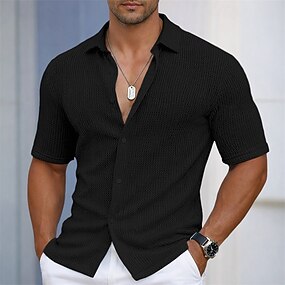 Miesten Paita Tekstuuri Rento paita Button Up paita Musta Valkoinen Vaalean sininen Lyhythihainen Tavallinen Kuubalainen kaulus Kausaliteetti Päivittäin Pitsi Vaatetus Tyylikäs Muoti Vapaa-aika