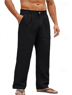 Miesten Pellavahousut Housut Kesähousut Roikkuvat housut Rantahousut Edessä tasku Laskokset Suora jalka Tavallinen Mukavuus Hengittävä Täyspitkä ulko- Loma Juhla Loma Muoti Loose Fit Musta Valkoinen
