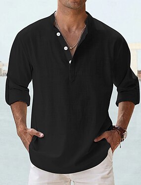 Miesten pellava paita Band kauluspaita Kesä paita Ranta-asut Rento paita Yhtenäinen väri ulko- Katu Musta Valkoinen Vaalean vihreä Sininen Lyhythihainen Henley Kesä Kevät Vaatetus Painike alas