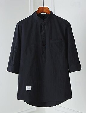 Miesten Pellava paita Popover paita Rento paita Rantapaita Band kauluspaita Tavallinen Kausaliteetti Hiekkaranta Musta Valkoinen Punastuvan vaaleanpunainen Sininen Pitkähihainen Pystykaulus Kevät