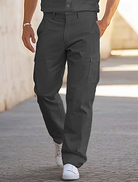 Miesten Reisitaskuhousut Pellavahousut Housut Kesähousut Monitasku Suora jalka Tavallinen Mukavuus Hengittävä Täyspitkä ulko- Kausaliteetti Päivittäin Muoti Katutyyli Musta Valkoinen