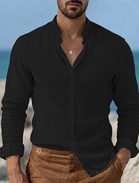 Miesten Paita pellava paita Puuvillainen pellava paita Valkoinen puuvillainen paita Kiinalainen kauluspaita Mandarin kauluspaita Tavallinen Loma Katu Musta Valkoinen Laivaston sininen Khaki