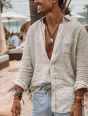 Miesten Paita Pellava paita Kesä paita Rantapaita Avoimet paidat Tavallinen Kausaliteetti Päivittäin Sininen Musta Valkoinen Punastuvan vaaleanpunainen Pitkähihainen Kauluskäänne Kevät kesä Vaatetus