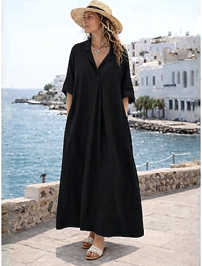 Naisten Maksimekko 100% Cotton Kaftaanimekko Rento mekko Perus Moderni Päivittäin Viikonloppu Loose Fit Tavallinen Puolihiha V kaula-aukko Musta Laivaston sininen Ruskea Apila Kesä Kevät