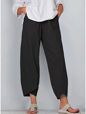 Naisten Cotton Blend Keinopuuvillainen pellava Kiinalainen Kesähousut Vapaa-aika Nilkkapituinen Luonnollinen Yhtenäinen Joustamaton Sininen Masentavan vihreä Musta Valkoinen Kesä Syksy Loose Fit