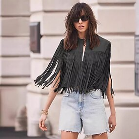 Retro / vintage Läntinen 1970 luku Mokkamainen liivi Hippi Lehmityttö Tupsu Naamiaispuku Naisten Naamiaiset Pride-paraati Pride-kuukausi Aikuisten Toppi Syystalvi
