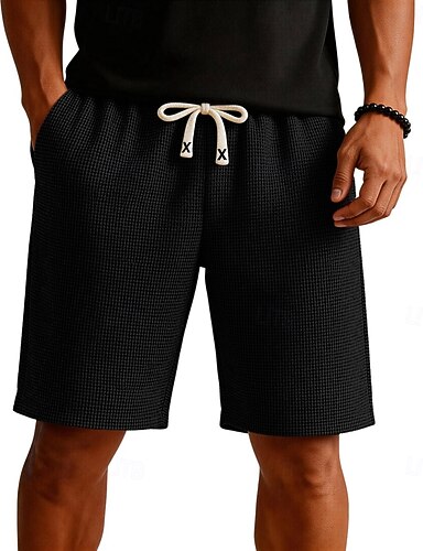 Miesten Shortsit Liinavaatteet Kesähousut Rantahousut Kurenauha Joustava vyötärö Napit Tavallinen Solid Color Mukavuus Hengittävä Polven pituus Päivittäin ulko- Hiekkaranta Loma Muoti Musta Valkoinen