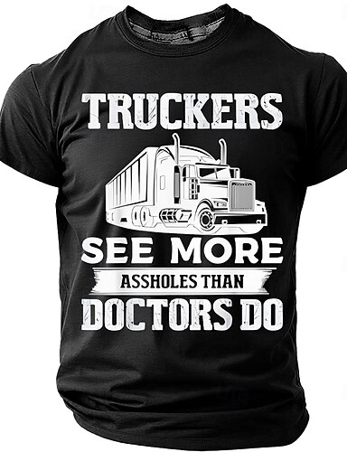 miesten rekkakuskit näkevät enemmän kusipäitä kuin lääkärit puoliperävaunu iso rekka hauska humoristinen sarkastinen t-paita graafinen normaali istuvuus kuorma-autoilu työvaatteet merkkivaatteet