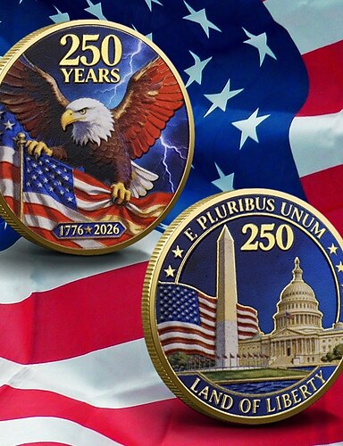 Yhdysvaltain 250-vuotisjuhlaraha 1776-2026, kaljupääkotkan isänmaallinen mitali, e pluribus unum, 250 vuotta vapautta, Amerikan historian keräilylahja