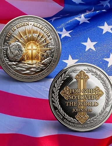 Hän on noussut ylös -muistoraha, Joh. 3:16 inspiroiva kristillinen keräilyesine, pääsiäisen ylösnousemus - uskonnollinen lahja, uskon ja lunastuksen muistoesine