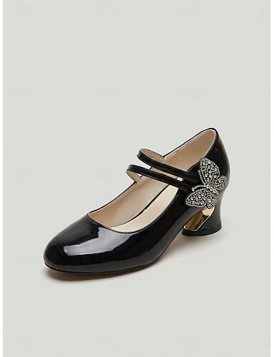 Naisten kirkkaanpunaiset lakkakengät, keinonahkaiset Mary Janes - elegantit pyöreäkärkiset lohkokorkokengät, joissa perhoskoriste, arkikäyttöön, moderni vintage-tyyli &toimistotyyliä