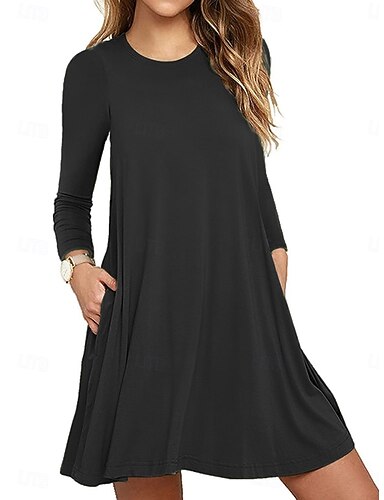 Naisten Polvipituinen mekko Keinopuuvillainen pellava Rento mekko Tyylikäs Muoti Moderni ulko- Loma Bile Normaali Tavallinen Pitkähihainen Tiukka pyöreä kaula-aukko Sininen Musta Valkoinen Rubiini