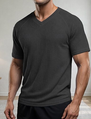 Miesten Vohveli T-paita T-paita Lyhythihainen V kaula-aukko Kesä Yhtenäinen väri Pintakäsitelty Muoti Suunnittelija Vapaa-aika Raglan Sleeves Kausaliteetti Päivittäin ulko- Vaalean sininen Musta