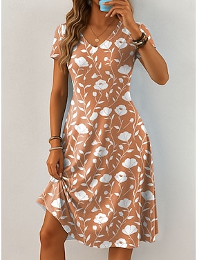 Naisten mini mekko pieni mekko t-paitamekko tee-mekko sundress A-linja mekko aktiivinen muoti katumuoti ulkoilu loma katulöysä istuvuus kukallinen hihaton V-pääntie oranssi vihreä tumma harmaa