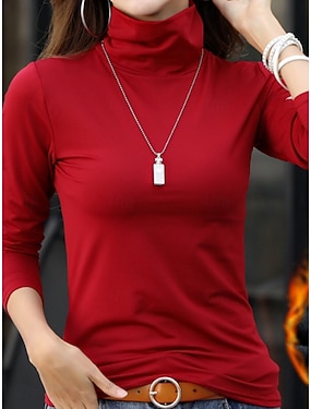 Naisten Pusero Yhtenäinen väri Tyylikäs Perus Vapaa-aika Pitkähihainen Poolokaulus Tavalliset topit Päivittäin Musta Valkoinen Punastuvan vaaleanpunainen Rubiini Ruskea Kevät Syksy Talvi