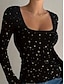 Naisten Pusero Tähti Tyylikäs Vapaa-aika Pitkähihainen U kaula-aukko Tavalliset topit Päivittäin Painettu Musta Kevät Syksy Talvi